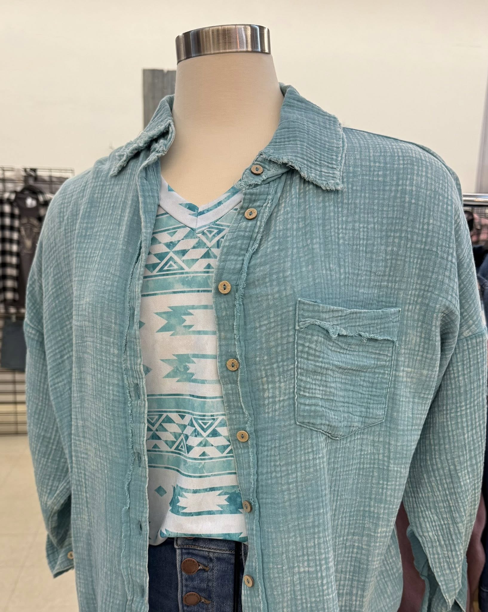 Pairs beautifully with the Turquoise Gauze Button Up: https://dustysageboutique.com/products/turquoise-gauze-button-up?_pos=2&_sid=48366d5e1&_ss=r